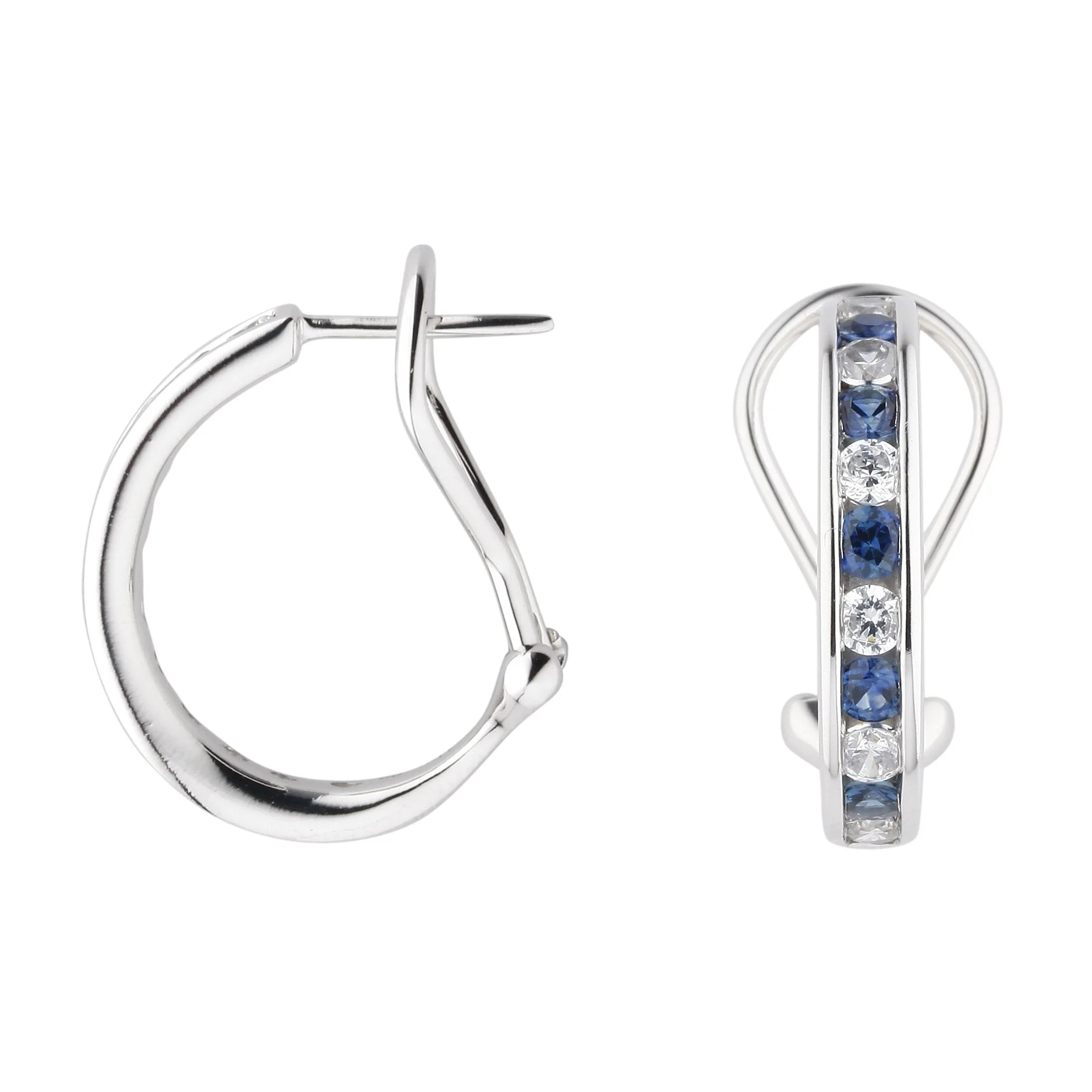 14 KW Diamond & Sapphire Hoop Earring accented with 10 round Sapphire TTW 0.57 CT, and 12 round diamonds TTW 0.72 CT in channel setting.